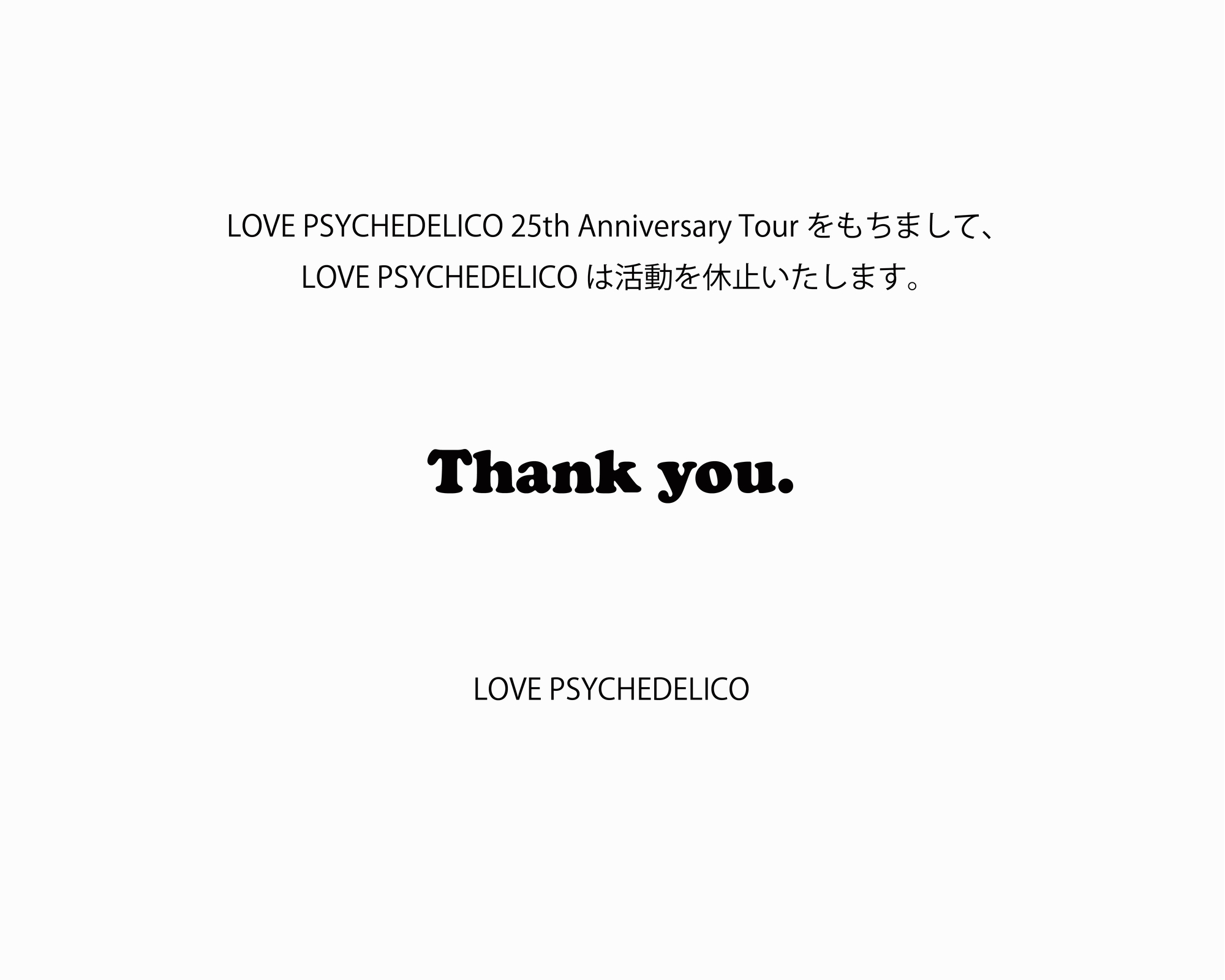 これまでLOVE PSYCHEDELICOをご支援くださったファンの皆さま、及び関係者の皆さまには心より感謝申し上げます。
