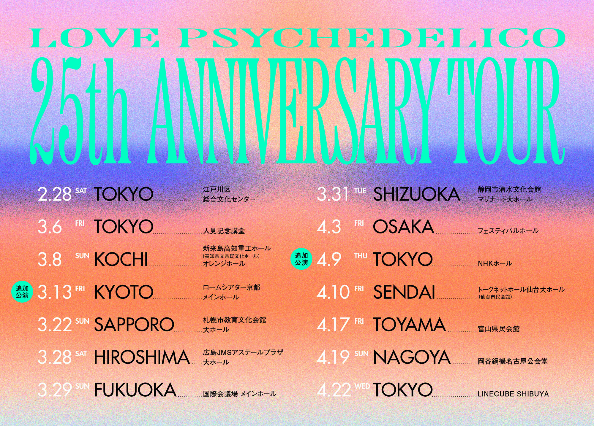 京都に続き「LOVE PSYCHEDELICO 25th Anniversary Tour」の追加公演が決定!