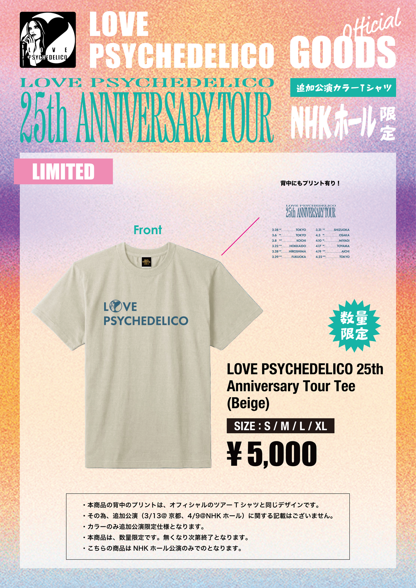 「LOVE PSYCHEDELICO 25th Anniversary Tour」4月9日 NHKホール 追加公演の限定Tシャツの販売が決定 !